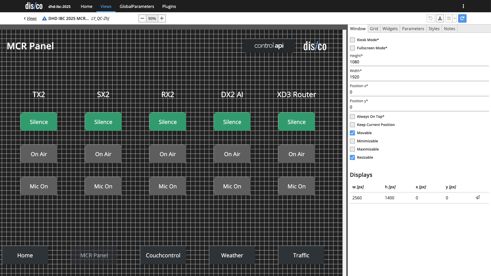 - Use disco interactively as a control system. To do this, you can configure special views with buttons and displays.