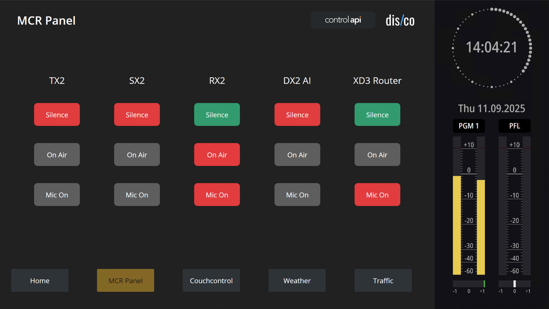 disco provides interactive widgets which allow you to create small control systems. This is no replacement for big broadcast or media controllers, but a compact, flexible platform for special integration tasks.